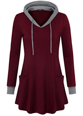 Women's Pullover Hooded Sweatshirt Long Sleeve Color Block Tunic Top with Pocket